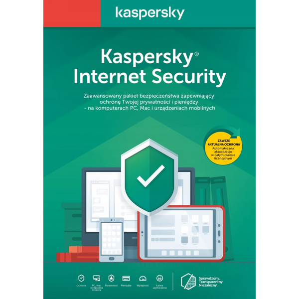 Kaspersky Internet Security zapewnia zaawansowaną ochronę dla Ciebie, Twojego komputera, pieniędzy i rodziny. Zaawansowane technologie bezpieczeństwa chronią przed wirusami i zagrożeniami internetowymi, jednocześnie chroniąc twoją tożsamość i dodając dodatkowe warstwy bezpieczeństwa podczas bankowości internetowej lub zakupów.